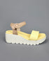 SANDALIA MOLECA DE COLORES AMARILLA-BEIGE Y PLATAFORMA BLANCA CON CIERRE DE HEBILLA PARA DAMA