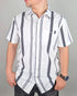 CAMISA BLACKOUT BLANCA CON RAYAS NEGRAS PARA CABALLERO 95%POLIÉSTER 5%ELASTANO