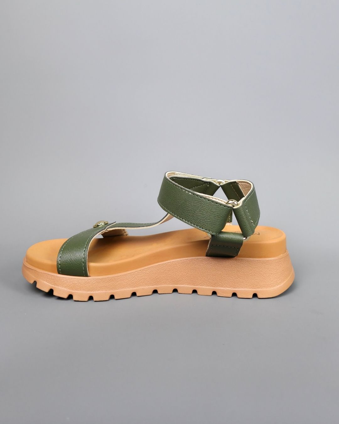 SANDALIA MODARE CAFÉ CON TIRAS VERDE MUSGO Y CIERRE DE VELCRO
