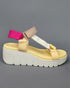 SANDALIA MOLECA AMARILLA DE PLATAFORMA BLANCA CON TIRAS AMARILLO-FUCSIA-BEIGE-BLANCO Y CIERRE DE VELCRO PARA DAMA
