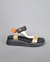 SANDALIA MODARE NEGRA CON TIRAS DE COLOR BEIGE-CAFE-NEGRA Y CIERRE DE VELCRO PARA DAMA