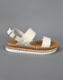 SANDALIA MOLECA BLANCA CON SUELA CAFÉ Y CIERRE DE HEBILLA PARA DAMA