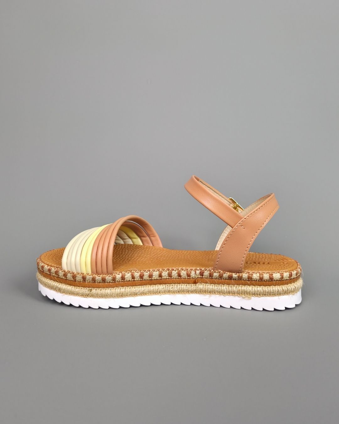 SANDALIA MOLECA NUDE CON AMARILLO Y CREMA PARA DAMA