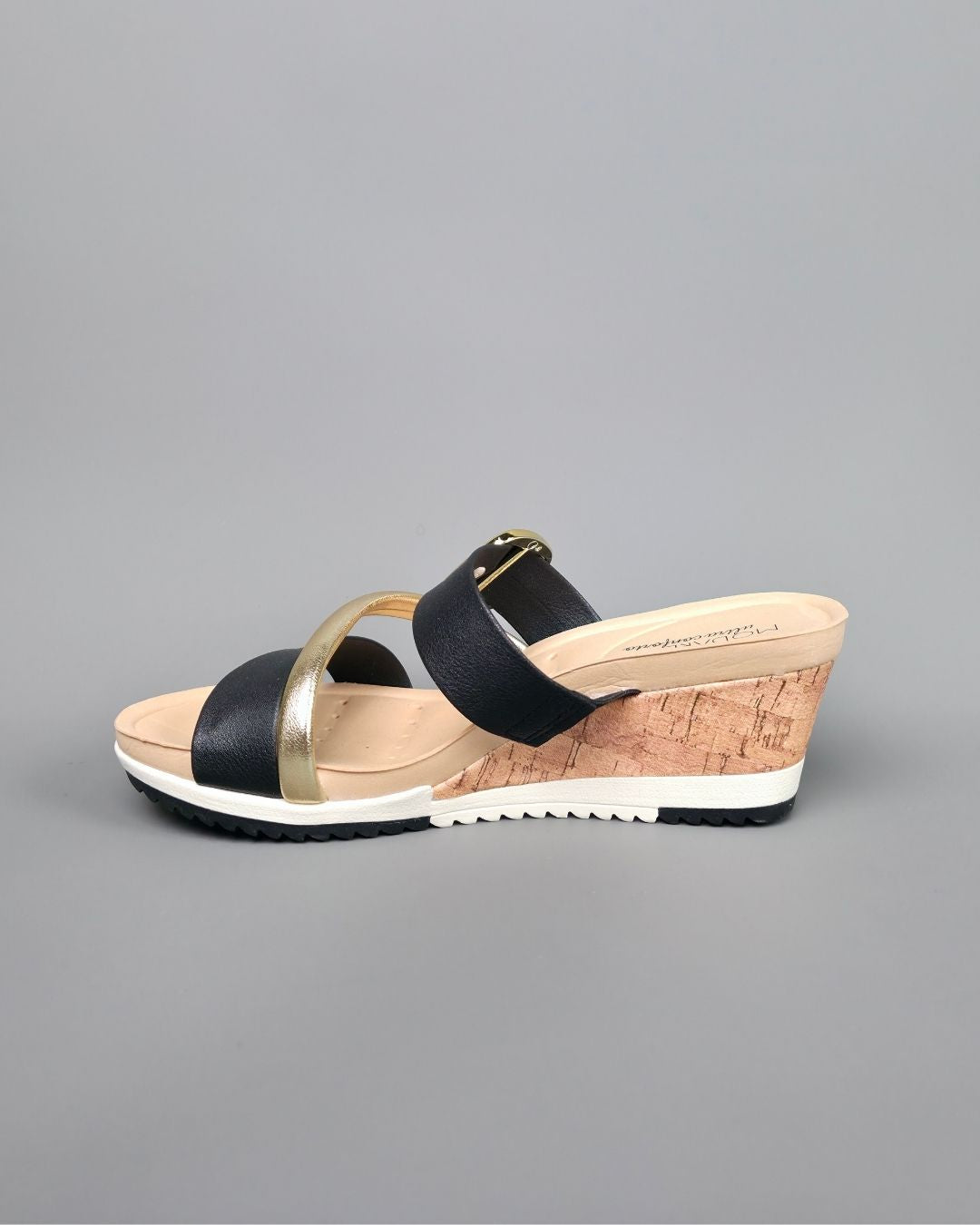 SANDALIA MODARE NEGRA-DORADO DE MUJER TACÓN DE CUÑA