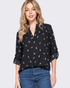 BLUSA ACTIVE MANGA LARGA NEGRA CON ESTAMPADO HOJAS BLANCAS