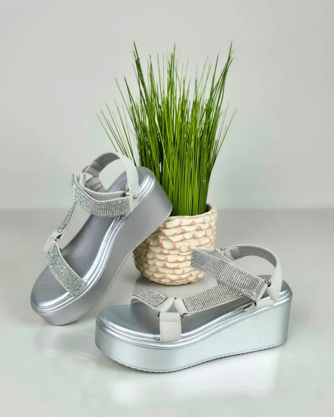 SANDALIA MIOS PLATEADO CON PERLAS CON PLATAFORMA