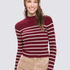 SWEATER LOVE TREE DE MUJER CUELLO ALTO VINO CON RAYAS BLANCAS