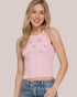 BLUSA ACTIVE BASIC ROSADA CON LAZOS BRILLANTES PARA DAMA 70% RAYON, 30% POLIÉSTER