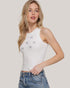BLUSA ACTIVE BASIC BLANCA CON LAZOS BRILLANTES PARA DAMA 70% RAYON, 30% POLIÉSTER