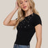 BLUSA ACTIVE BASIC NEGRA CON PERLAS DE MUJER 70%RAYON 30%POLIÉSTER