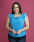 BLUSA TOGETHER CELESTE CON ENCAJE EN EL PECHO 100% POLIESTER