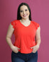 BLUSA TOGETHER ROJA CUELLO V CON ENCAJE DE FLORES EN MANGAS 100% POLIÉSTER