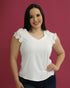 BLUSA TOGETHER BLANCA CUELLO V CON ENCAJE DE FLORES EN MANGAS 100% POLIÉSTER