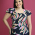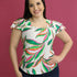 BLUSA TOGETHER AZUL CON ESTAMPADO HOJAS DE COLORES 80% RAYON, 20% NYLON