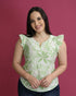 BLUSA TOGETHER BLANCA CON ESTAMPADO PALMERAS VERDES 80% RAYON, 20% NYLON