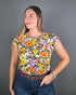 BLUSA BONAMI AZUL CON ESTAMPADO FLORES DE COLORES 100% RAYON