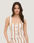 BLUSA MINE PARA DAMA BEIGE CLARO CON RAYAS CAFÉ 80% RAYON, 15% LINEN, 5% ALGODÓN, 100% POLIESTER